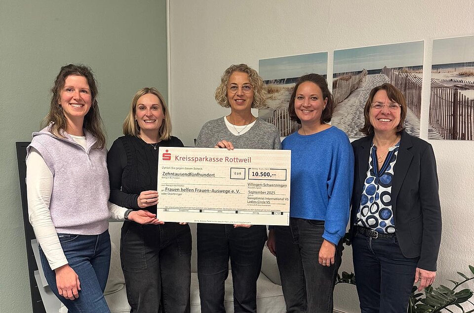 Die beiden Frauennetzwerke Soroptimist Club und Ladies Circle Villingen-Schwenningen konnten eine stolze Spendensumme von 10.500 Euro für die Präventionsprojekte „STANDpünktchen“ und „StandPUNKTE“ an den Verein „FhF+Auswege e.V.“ überreichen. Gespendet wurde der Erlös des ersten gemeinsam durchgeführten Charity-Golfturniers im Golfclub Königsfeld. Dank der vielen Teilnehmer und Sponsoren, des Engagements des Golfclubs und der Clubmitglieder beider Frauen-Serviceclubs war das Event ein voller Erfolg. Durch die gemeinsame Aktion entstanden zudem wertvolle Kontakte und Freundschaften zwischen den Frauen. Beide Clubs wollen das Golfturnier als eine jährlich stattfindende Aktion etablieren.